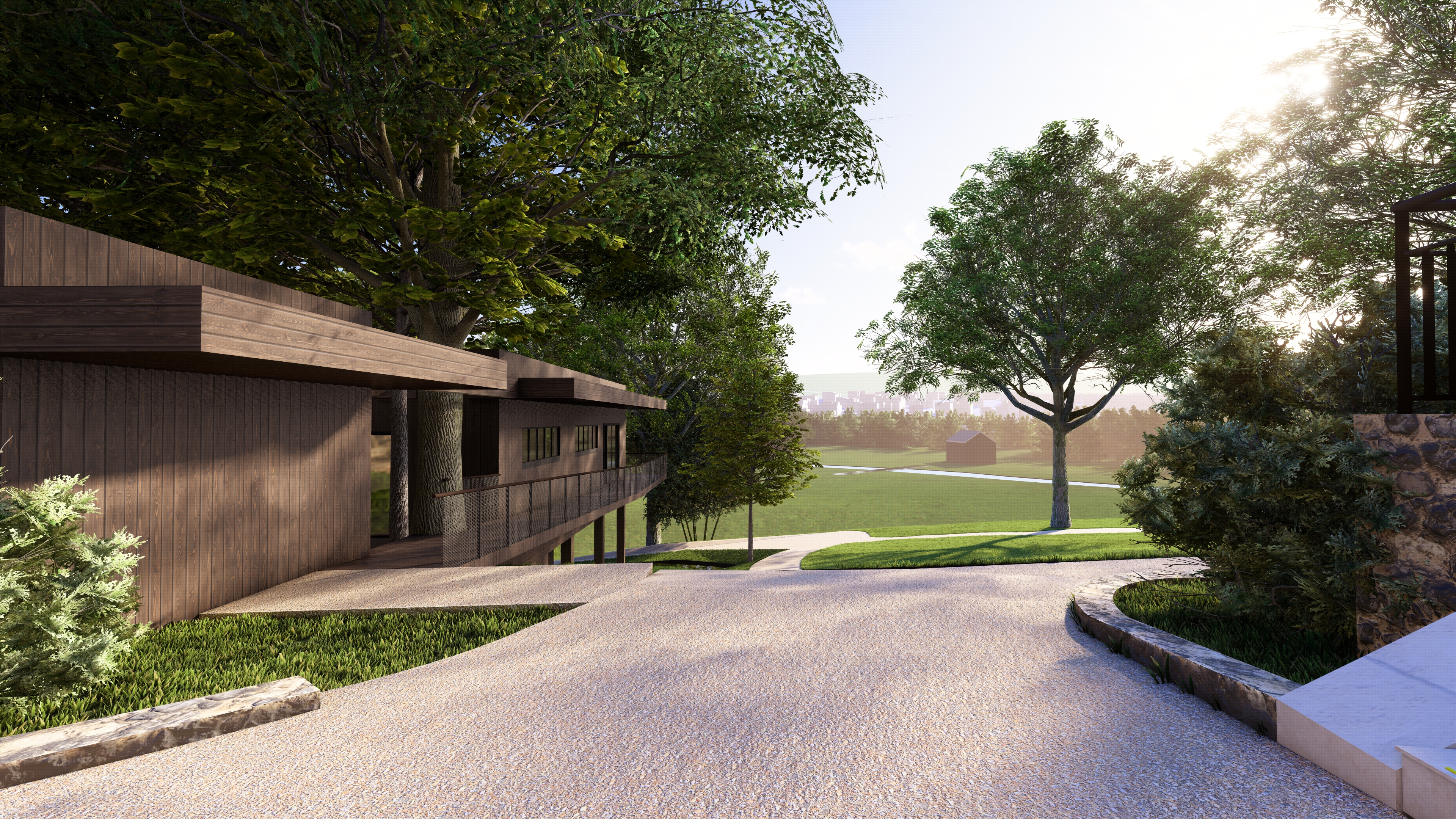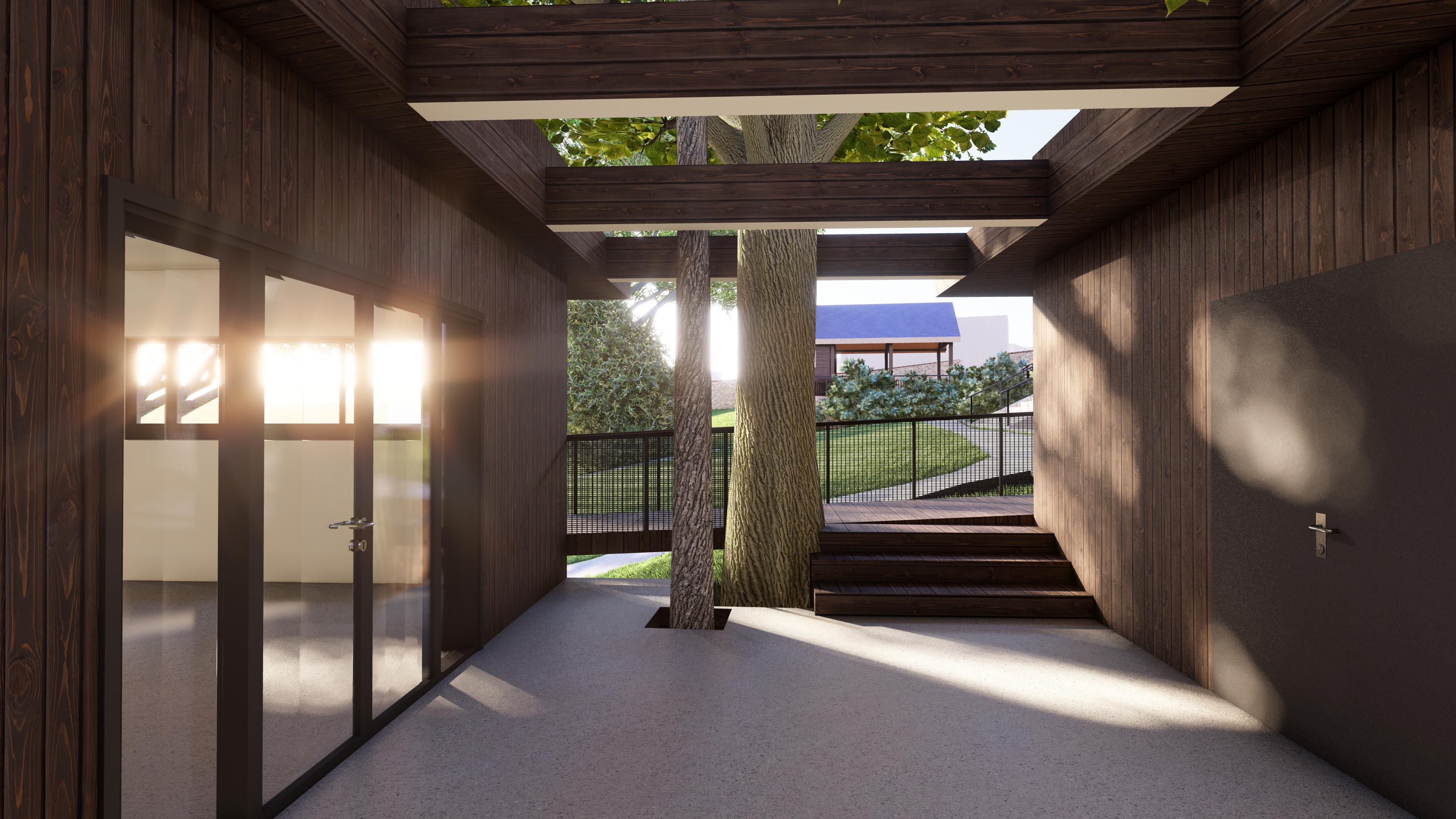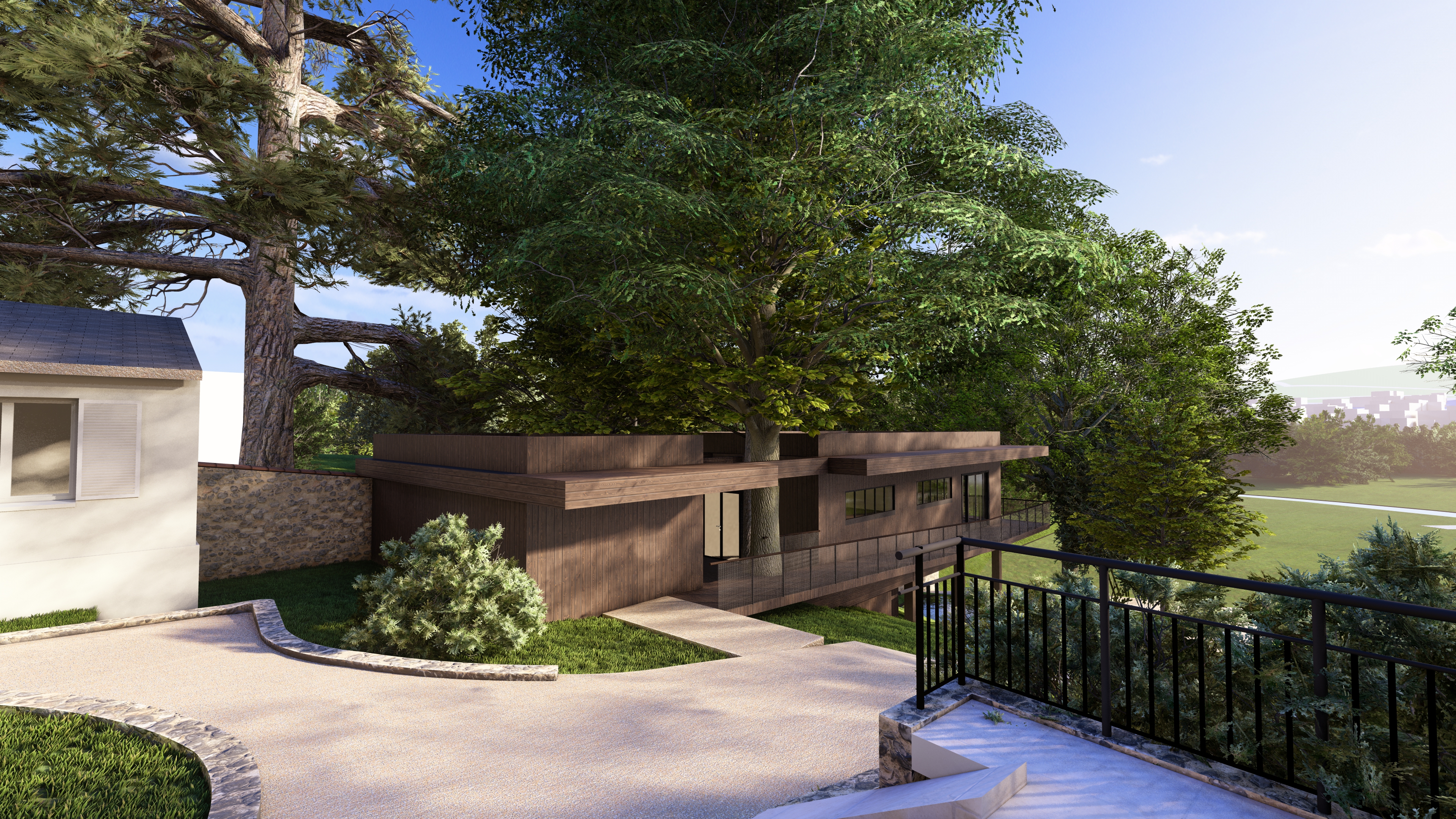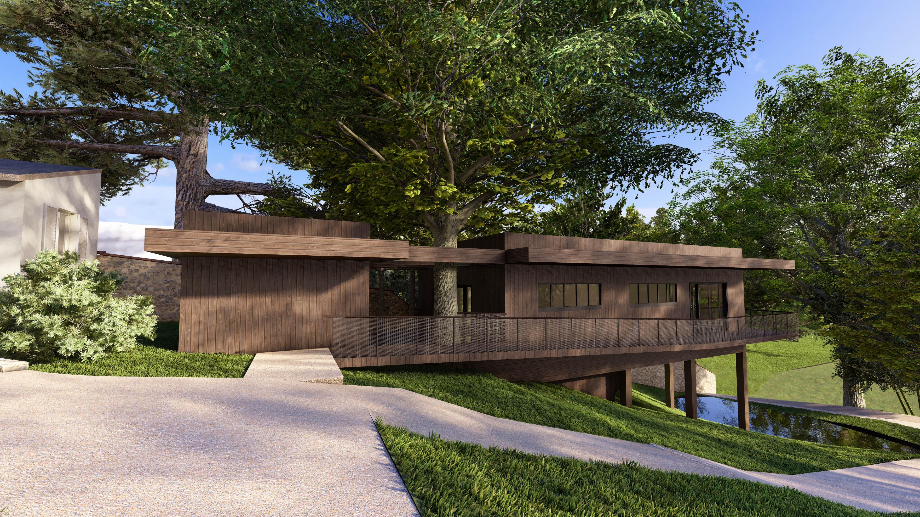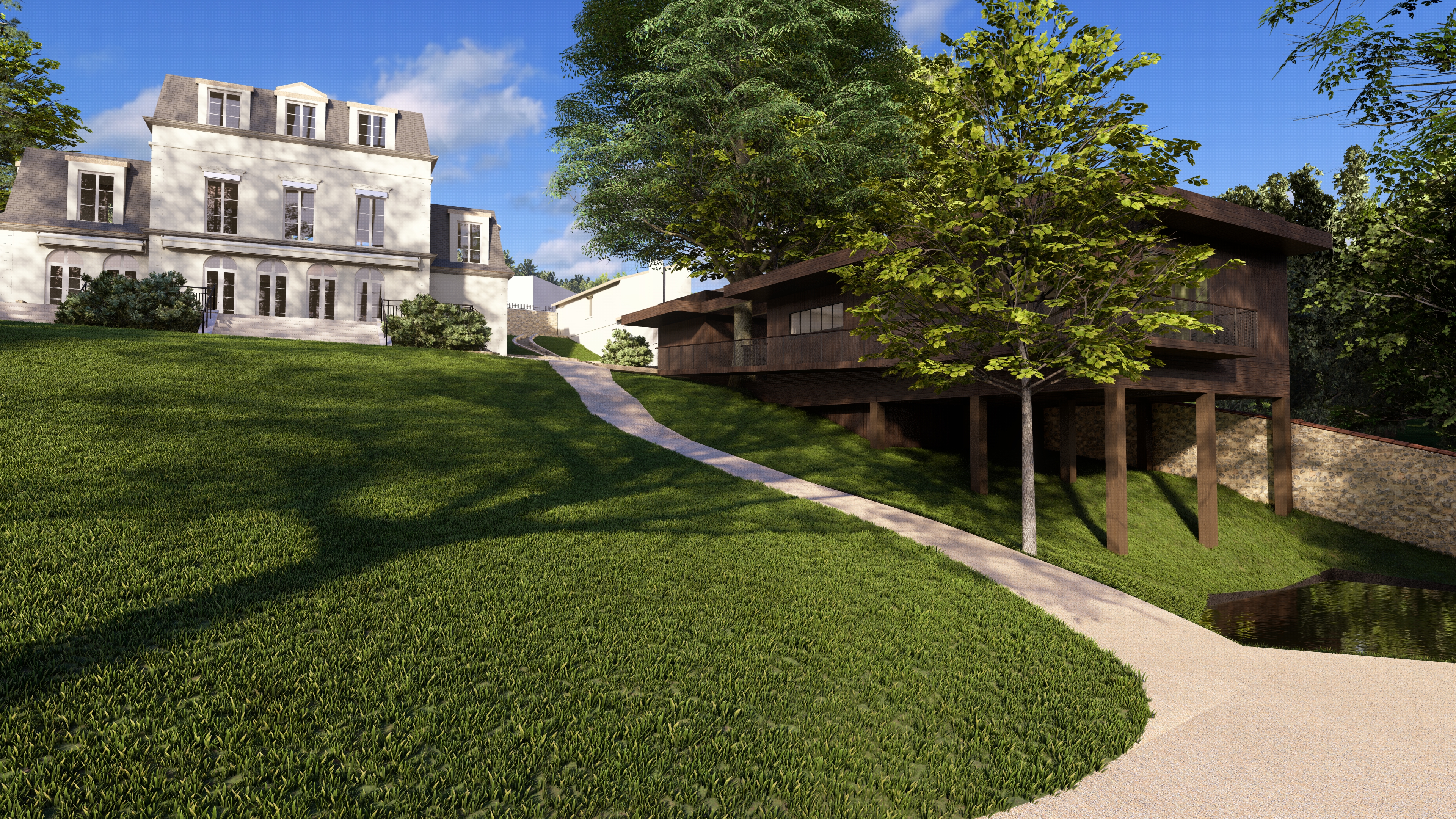 Le bâtiment se veut le plus discret possible en s’intégrant au mieux dans un paysage verdoyant.