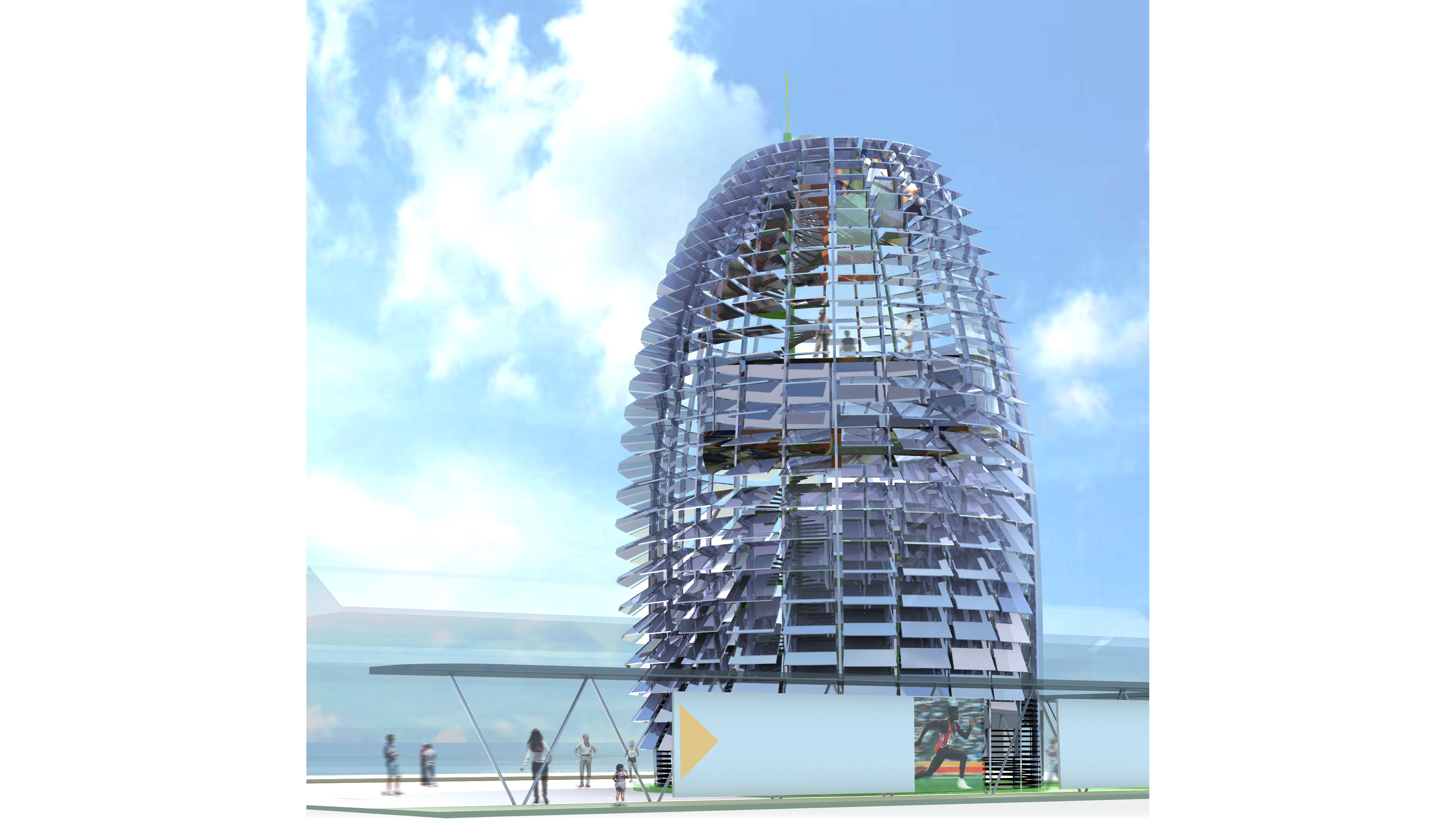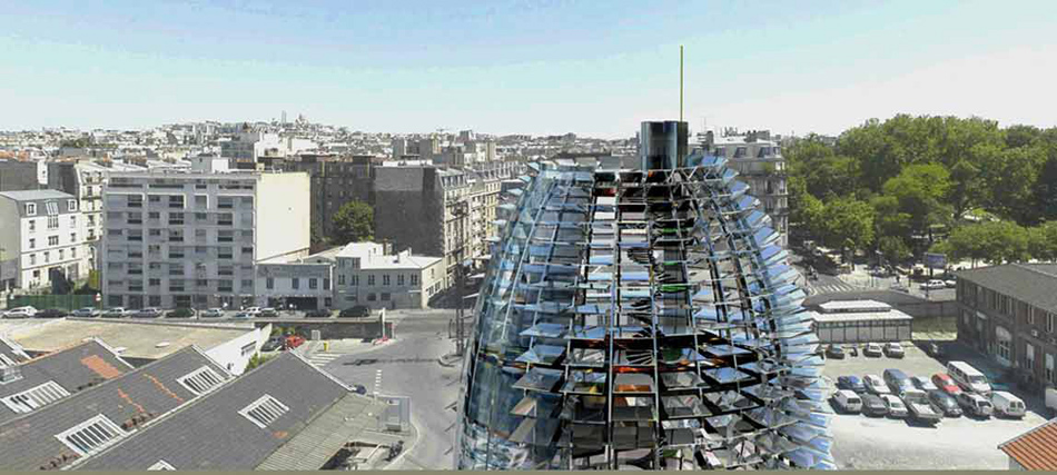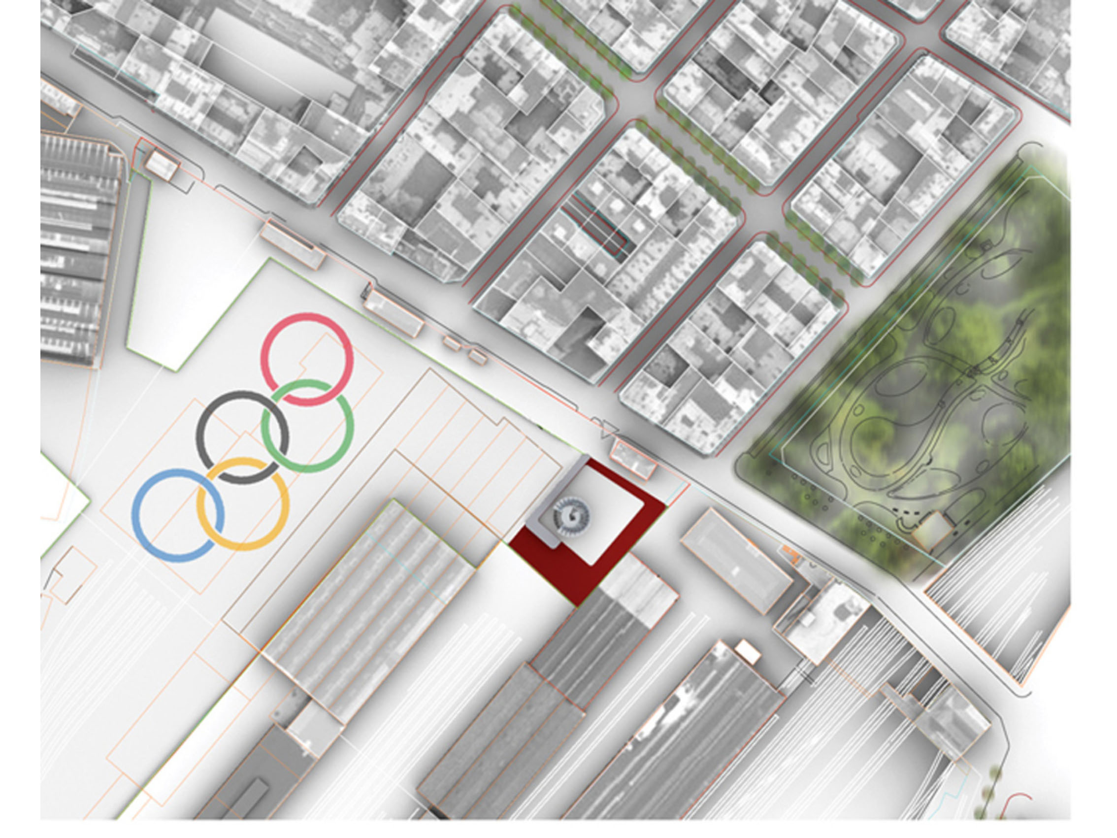 Conception d'un lieu d'exposition "totem" à l'entrée du futur village olympique, dans le cadre de la candidature de la ville de Paris comme siège des JO d'été de 2012.